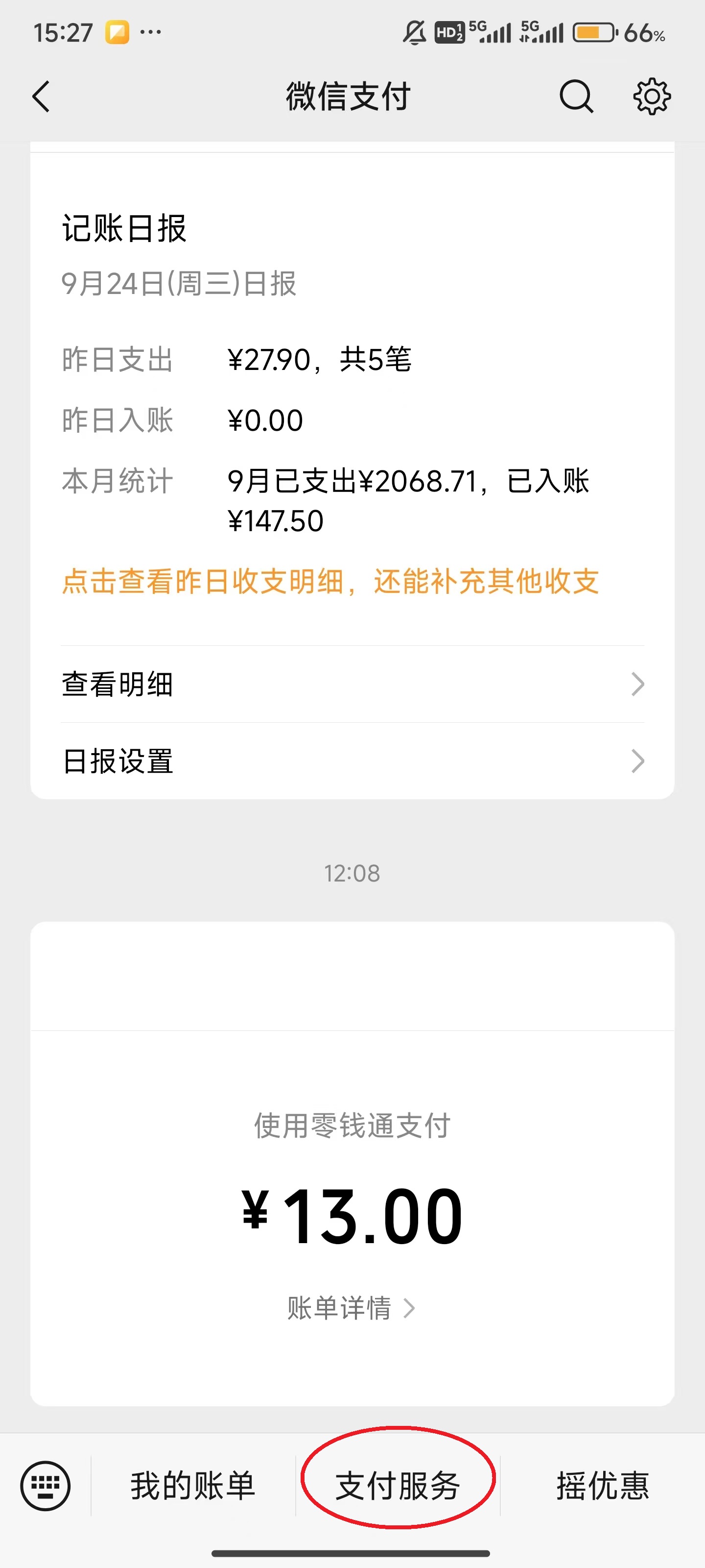 3、點擊屏幕下方的“支付服務”。